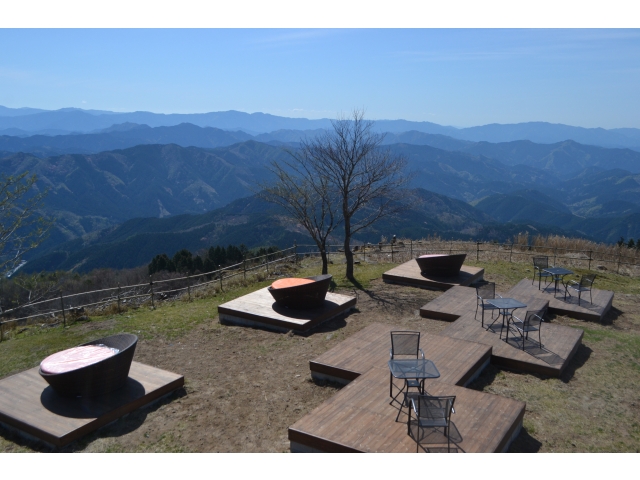 萩太郎山は、標高1358mで愛知県で2番目に高い山です。1番高い山は茶臼山(1415m)です。完成したテラスは山頂の南東側に位置し、南アルプスや浜松・豊橋方面が見えます。天気の条件がそろえば、遠州灘・三河湾なども見ることができます。また、山頂なので周りに光がないこともあり、夕暮れや夜には満天の星空や名古屋・豊橋・浜松の夜景も見ることができます。
